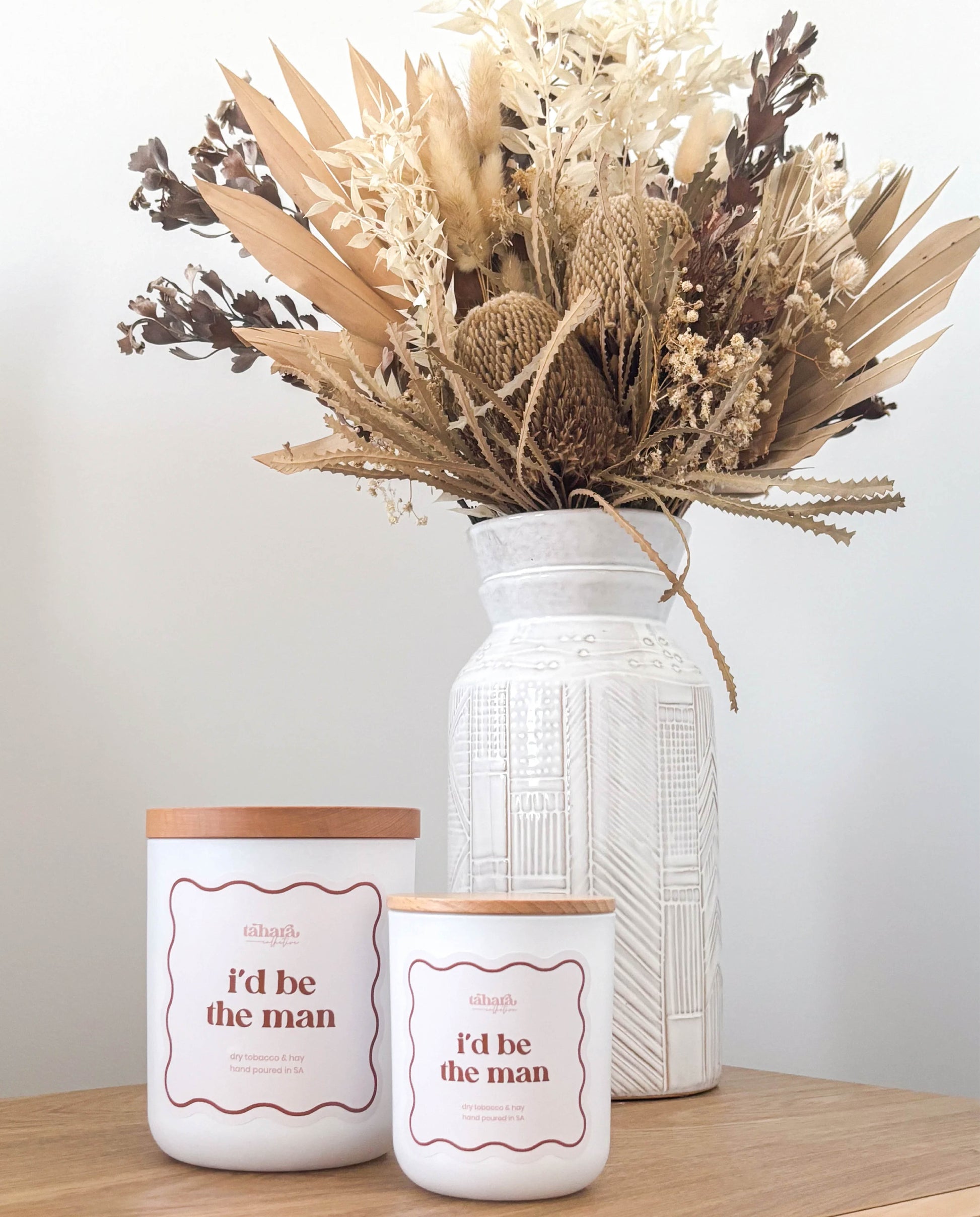 hand poured in a matte white jar with a natural timber lid and wavy woodwick