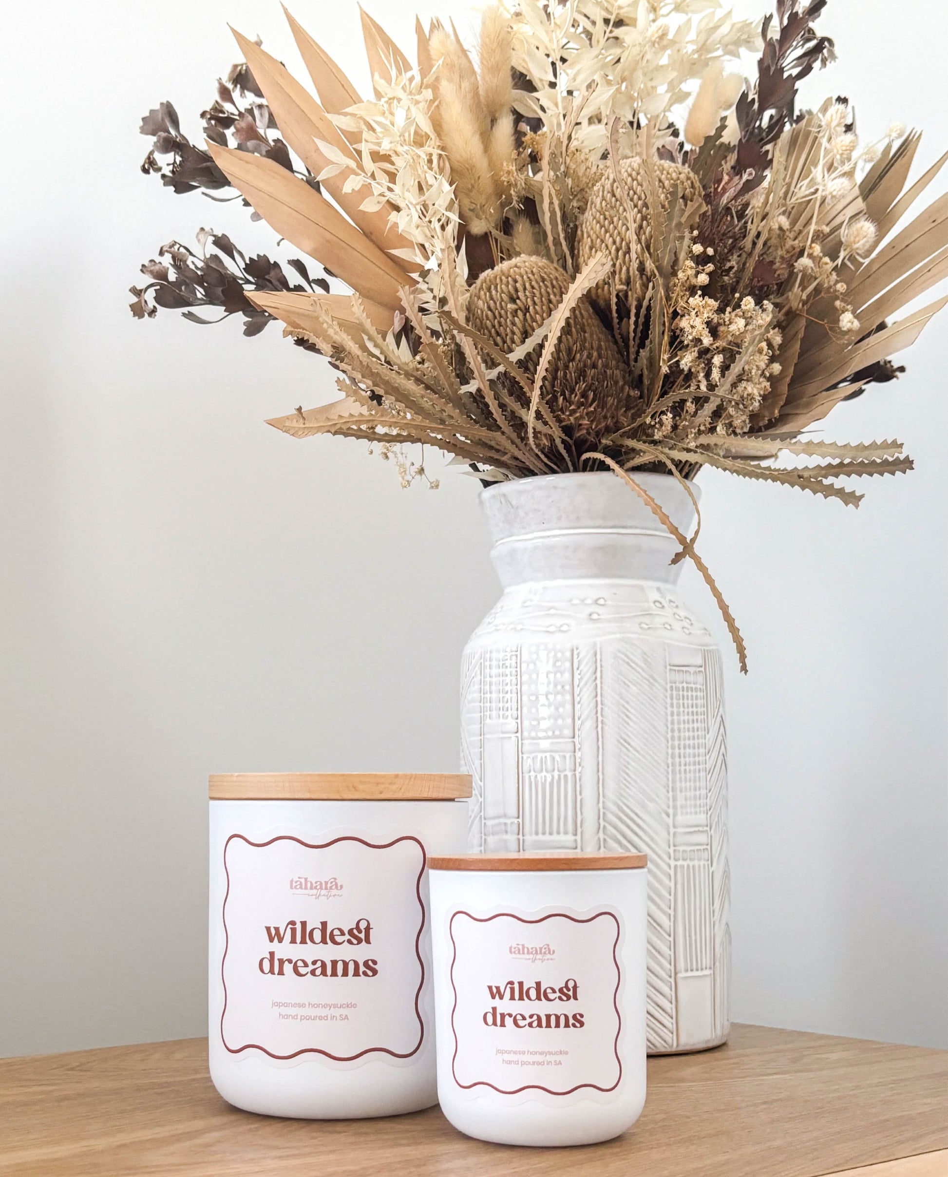 hand poured in a matte white jar with a natural timber lid and wavy woodwick